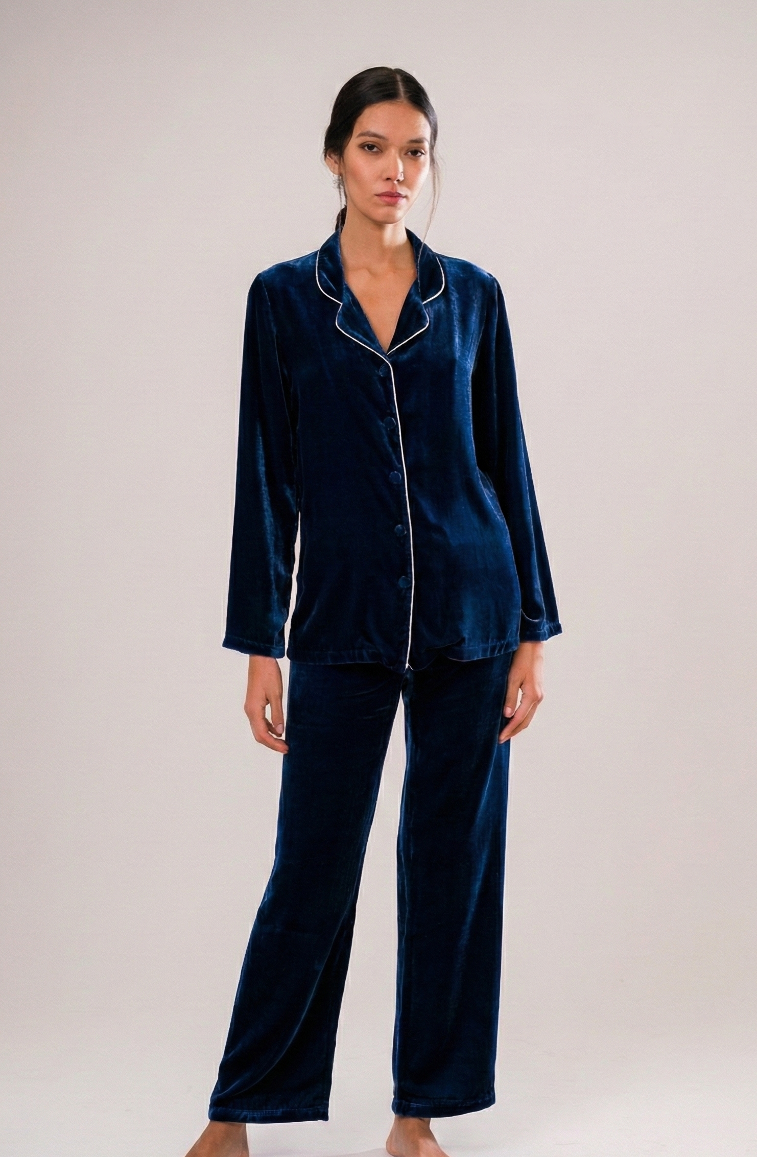 Pigiama Set in Velluto di Seta Blu